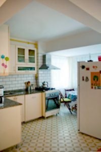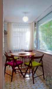 Ayrıca giriş, açık mutfak ve tüm ıslak mekanların zeminlerinde kullanılan renkli çini taşı da evin öne çıkan bir diğer karakteri. Bir bahçe katı olması sebebiyle daire içinin bahçe ile ilişkisi yoğunlaştırıldı, mesela mutfak tamamen duvarsız bir hale dönüştürülerek hem yaşam alanı, hem de bahçe manzarası ile iletişimde tutuldu.