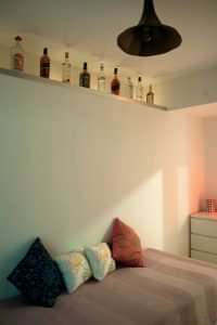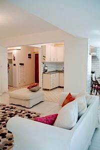 Yeni duvarlar inşa edilirken bu duvarların tavana kadar gitmesine izin verilmeyip, duvar bitiş hizası ve tavan boşluğu arasında kalan yerlerin çok amaçlı gömme dolap olarak değerlendirilmesi daireye hem artı bir özellik hem de farklı bir karakter kattı.