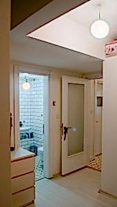 2013, İstanbul – Giriş katı olması sebebiyle doğal ışık kullanımı nispeten az olan dairenin standart kooperatif plan kurgusundan arındırılması ve gerçek kullanıcılarının istek ve ihtiyacına göre yeniden planlanması projeye yaklaşımımızın çekirdeğini oluşturmaktaydı.