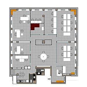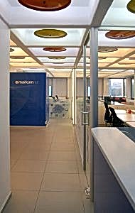 Ofis ortamında şeffaf mekân bölücüler sayesinde ekip çalışanları diledikleri anda birbirleriyle görsel temas kurabilecekler, gerektiğinde de kendi işlerine daha çok konsantre olabileceklerdir. Bu şeffaflık ve geçirgenlik üç cephesinden de gün ışığı alan ofisin her noktasına doğal aydınlığın ulaşmasını da sağlar.