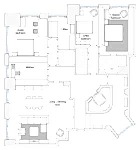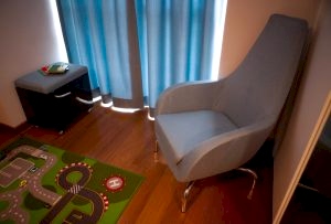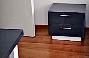 Mobilyalar tekrar eden modüllerden kurgulandığı için kutular olarak üretildi, hangi ürüne dönüştürülecekse ona göre montajı yapıldı. Beyaz metal kaide üzerine standardize edilmiş ölçüler ve tekrarlayan katlarından gri ve parlak ahşaplar ile tv ünitesi, dresuvar, orta sehpa, misafir gardrobu, komodin, yemek masası, ofis masası, ayakkabılık, çocuk oyuncak kutuları üretildi. Beyaz ve gri parlak renk tercihi mekan karakterinin tamamlayıcısı konumunda olup, bunlar ince, narin ve mobilyaya uyumlu metal kulplar ile tamamlandı. Amaçlanan modern, şık ve minimal atmosfer bu şekilde oluşturuldu.
