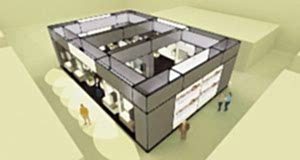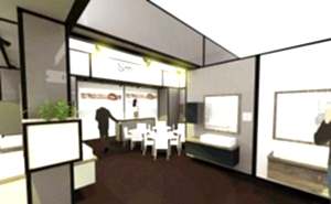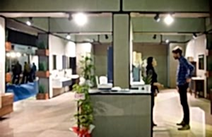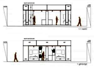 2019, İstanbul – CNR Fuar Standı’nda Banyo Mobilyaları Fuarı için 1 haftalığına kiralanan 117m² alan üzerinde modüler, esnek ve sürdürülebilir bir fuar standı uygulaması yapıldı. Tasarım için en önemli kriter ileride yeniden farklı alanlarda gerçekleşebilecek fuarlarda bu fuar için yapılan ürünlerin demonte edilip kullanabilmesine olanak sağlaması yani sürdürülebilirlik ilkesini benimsemesiydi. Elektrostatik koruyucu boyalı alüminyum profilleri birbirine vida olmadan köşe elemanları ile bağlanıp standart ölçülerde dikdörtgen prizmalarını yani modülleri oluşturmaktadır. Modüllerin yüzeyleri mdf, sunta gibi ahşap plakaların profillere vidalanması ile kapatıldı, kapatılan yüzeylerin üzerinde de farklı konseptleri yansıtan banyo dolap mobilyaları asıldı. Modüller birbirine kolayca bağlanıp içeride kalan alanlarda elektrik bağlantıları çözülüp, daha büyük modüllerin içinde vestiyer ve mutfak nişi yer almıştır.