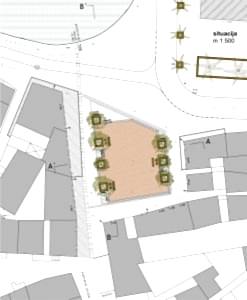 Mekânın farklı işlevlerde kullanılması ve meydan oluşturma öngörüsü ile proje alanının ortası boş bırakıldı. Boş bırakılan alanın etrafı birkaç ağaç ile çevrelendi ve ağaçların etrafında banklar düşünüldü.