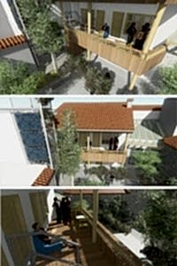 Merdivenin ve bu sayede asmanın ulaştığı teras 3. dönemde eklenen betonarme yapının terasıdır ve döneminin özelliklerini yansıtmaktadır. Yalnızca terastan görünebilen Akropol manzarası ise tasarımın geçmişle olan bağlantısını tamamlamaktadır. Avluda bulunan metal merdivenin Güney cephesine fotovoltaik güneş panelleri asılması düşünülmüştür. Böylece evin elektrik ihtiyacı doğa dostu bir şekilde çözülmüştür.