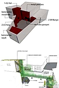 Yapı; inşaa edildiği günden bugüne bir çok değişim geçirmiştir. Restitüsyon projesinde de belirtildiği üzere yapı 3 dönemde incelenmiş her dönem kendi teknik ve malzeme kullanımı ile bir değer katmıştır. Restorasyon projesinde yapıya eklenmesi önerilen metal merdivenler ve strüktürlerin de günümüz teknolojisini yansıtması amaçlanmıştır. Bu ekler sökülebilir detaylara sahiptir ve yapıdan kolayca ayrılabilir. Böylece yapıda iz bırakılmamıştır. Avluda bulunan metal merdiven mevcutta bulunan asmanın tutunabileceği bir strüktür olarak da işlev görmektedir.Bu strüktür asmanın başladığı noktadan çatıya kadar devam etmekte ve avluyla terasın sürekliliğini sağlamaktadır.